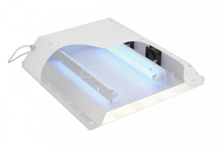АНТИВИРУС SPACE – устройство нового типа для борьбы со сложными вирусными эпидемиологическими ситуациями. Устройства для обеззараживания воздушной среды совмещенные с офисными светодиодными светильниками разработаны для работы в помещениях с постоянным присутствием людей. Устройства разработаны для монтажа в стандартные потолки: - «АРМСТРОНГ» в стандартные ячейки размерностью 600х600 мм. - «ГРИЛЬЯТО» в ячейки: 50х50 мм, 100х100 мм, 200х200 мм. Рециркуляторы бактерицидные состоят из двух частей: - Рециркуляционный модуль обеззараживания воздуха закрытого типа, оснащенный принудительной системой вентиляции и бактерицидными УФ-лампами, производительность 50м3/час. - Светодиодный модуль, аналогичный светильнику ОФИС 33 Вт, эффективность 110 лм/Вт. Эффективная борьба с вирусами в офисах и общественных помещениях. Обеззараживание воздуха происходит благодаря работе газоразрядных бактерицидных УФ-ламп, с длиной волны ультрафиолетового излучения 254 нм, которые способны очистить воздух от болезнетворных бактерий и вирусов (ОРВИ, ОРЗ, COVID19 и др.). УФ-излучение в диапазоне длин волн около 254 нм хорошо проникает сквозь стенку клетки микроорганизма и поглощается ДНК, вызывая нарушение ее структуры. В результате прекращается процесс воспроизводства микроорганизмов. УФ-лампы установлены в обеззараживающем модуле и надежно скрыты от глаз людей. Бесшумность и эффективность. Воздух из помещения прокачивается через рециркуляционный модуль обеззараживания светильников благодаря установленным внутри бесшумным вентиляторам. Система прокачки воздуха устроена таким образом, чтобы потоки не смешивались, сопла светильника направлены в разные стороны, за счет такого расположения достигается оптимальная циркуляция воздуха в пространстве под светильником, позволяющая постоянно поддерживать чистоту воздушной атмосферы в помещении. Одного устройства достаточно для поддержания чистой атмосферы в помещении площадью до 30 м2. Ультрафиолет безопасен для людей. Газоразрядные лампы ультрафиолетового излучения установлены в отдельном изолированном модуле светильника таким образом, чтобы их не было видно находящимся в зоне действия светильника людям. Высокая производительность. Производительность обеззараживающего модуля с активной системой вентиляции составляет примерно 50 м3/час. Этого достаточно для эффективного очищения воздушной среды от вирусов в помещениях площадью до 30 м2. Светильник АНТИВИРУС SPACE содержит светодиодный модуль, который обладает высокой световой эффективностью, более 110 лм/Вт. Цветовая температура светового потока – 4000К (нейтрально-белый свет). Простой монтаж. Светильник устанавливается в стандартные ячейки потолка «АРМСТРОНГ» размером 600х600 мм, взамен ранее установленных светильников, либо в дополнение к ним. Также светильник может быть установлен в потолки «ГРИЛЬЯТО» с ячейками 50х50 мм, 100х100 мм, 200х200 мм. Светильник снабжен кронштейнами для подвесного монтажа. Сразу в работу. Вы получаете готовый к установке и работе обеззараживающий прибор. Вам ничего больше не потребуется, кроме как подключить устройство к рабочей сети с напряжением 220В. Исполнение блока обеззараживания. В светильнике установлен изолированный блок обеззараживания воздуха, который оснащен двумя УФ-лампами по 15 Вт каждая: тип Т8, цоколь G13, диаметр 26мм. Пр