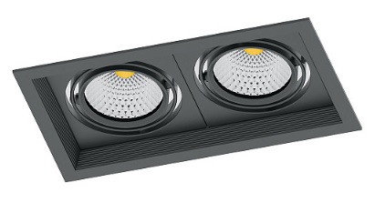 Светильник карданный встраиваемый светодиодный , карданный (ДВО) FERON AL202, 24W 4000К (белый), 170-265V, 2160Lm, IP20, угол рассеивания 35°, цвет черный, корпус алюминий, рассеиватель стекло, 260*145*73 мм, монтажн.отв. 240*125 мм.