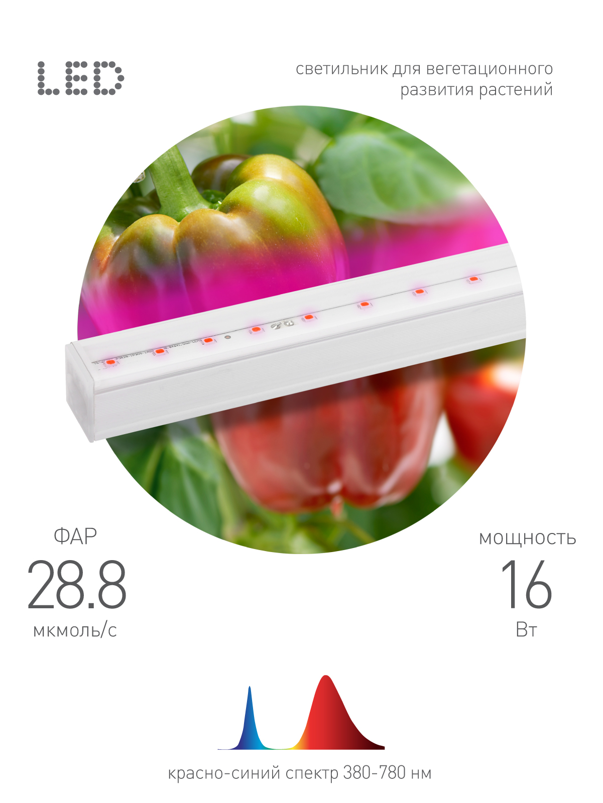 Светильник для растений ЭРА FITO-16W-Т5-N предназначен для рассады пасленовых, выращивания зелени на подоконнике и досвечивания комнатных цветов. Красно-синий спектр обеспечивает питание корней и листьев, предотвращает вытягивание. Рекомендованное расстояние размещения от 5 до 35 см. Увеличение диапазона между растениями и светильником уменьшает эффект от использования обратно пропорционально квадрату расстояния. Аккуратный и лаконичный дизайн позволит модели легко вписаться в интерьер балкона или кухни. Главные преимущества линейной фитолампы установка, которая не займет много времени, и равномерно распределенный свет. Свечение от нее совершенно безопасно для человека и животных. Корпус модели выполнен из прочного пластика. В упаковке Вы найдете провод для подключения к сети, защитный колпачок и крепления. Светодиодная лампа для растений это долговечность и экономия затрат на электроэнергию. Диоды в светильнике работают в дефорсированном режиме, что обеспечит ему долгий срок службы и хорошую светоотдачу. Создайте для любимых растений комфортные условия, а себя обеспечьте большим урожаем вместе с фитолампой ЭРА.