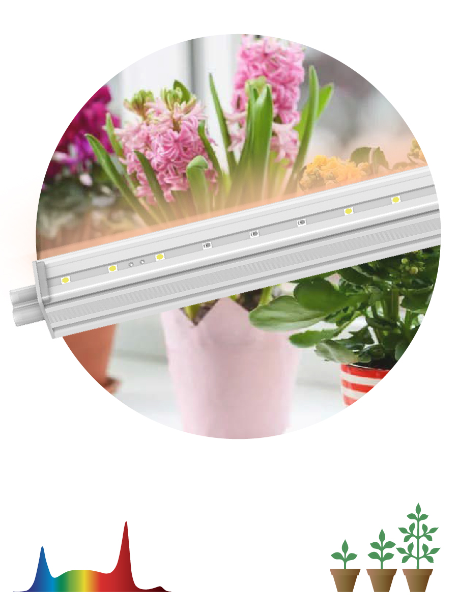 Светодиодный фитосветильник ЭРА FITO-9W-Т5-Ra90 мощностью 9 Вт - отличный вариант для растений на всем протяжении их развития. Правильное сочетание длин волн и энергии в спектре данной лампы - отличный рецепт для подкормки Ваших растений. Светильник не слепит ярко фиолетовыми оттенками, его свечение приятно для глаз. В то же время спектр оптимален для роста и развития растений вне зависимости от сорта и культуры. Растения выращенные под данным светильником имеют выраженный, специфичный для них аромат и вкус. Находясь под данной фитолампой, Ваши зеленые друзья научатся с легкостью переживать пересадку и пикировку. Площадь эффективного излучения составляет 1 м2. Для владельцев крупных хозяйств есть огромный плюс: до 14 светодиодных светильников легко соединяются в одну линию без дополнительных креплений. Корпус выполнен из прочного пластика. Он не нагревается, неприхотлив в уходе. При возникновении горения лампа автоматически затухает. Работа фитосветильника никак не влияет на зрение. Пульсаций менее 0,4% не будет раздражать глаза. Необходимо помнить, что затраченная мощность прямо пропорциональна урожаю. Для корректирования времени досветки необходим таймер для фитоламп ЭРА FITO-LINETIME (1,5 м) - 15515785. Время досветки настраивается от 9 до 15 часов. Рекомендуемое расстояние от светильника от 5 до 35 см. Длина шнура питания - 0,5 м. Вырастить собственный урожай теперь не составит труда. Приобретайте фитолампу компании ЭРА и наслаждайтесь процессом. Фитолампа для растений / светодиодный светильник для рассады / фито лампа / фитосветильник.Редактировать