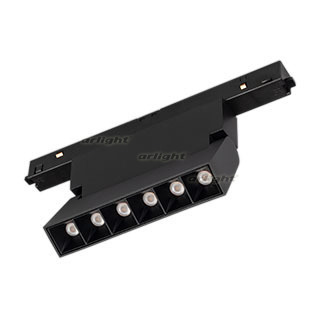 Светильник для магнитных треков MAG-ORIENT шириной 26 мм. Мощность 6 Вт, св. поток 250 лм, 42 лм/Вт, теплый 3000 K, CRI>90, угол 30°, напряжение питания 48 В. Черный прямоугольный корпус из металл, экран поликарбонат, степень защиты IP20. Размер: длина 195 мм, ширина 23 мм, высота 107 мм. Монтаж на трек MAG-ORIENT. Пульсация <1%.
