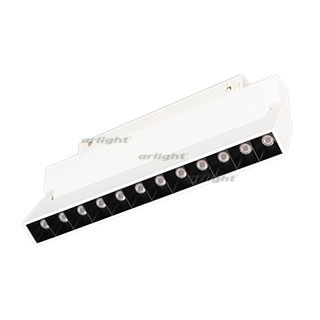 Светильник для магнитных треков MAG-ORIENT шириной 26 мм с управлением DALI. Мощность 12 Вт, св. поток 520 лм, 43 лм/Вт, теплый 3000 K, CRI>90, угол 30°, напряжение питания 48 В. Белый прямоугольный корпус из металл, экран поликарбонат, степень защиты IP20. Размер: длина 231 мм, ширина 23 мм, высота 107 мм. Монтаж на трек MAG-ORIENT. Пульсация <1%.