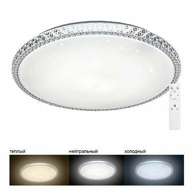 Светильник накладной светодиодный, потолочный управляемый (ДПО) FERON AL5300, 100W, 3000К-6000K (теплый-белый-дневной), 230V, 8500Lm, IP20, угол рассеивания 120°, цвет белый, корпус штампованная сталь, рассеиватель матовый пластик, серия "звездное небо", 700*700*90
