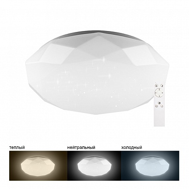 Светильник накладной светодиодный, потолочный управляемый (ДПО) FERON AL5200, 36W, 3000К-6000K (теплый-белый-дневной), 230V, 2900Lm, IP20, угол рассеивания 120°, цвет белый, корпус штампованная сталь, рассеиватель матовый пластик, серия "звездное небо", 410*410*90