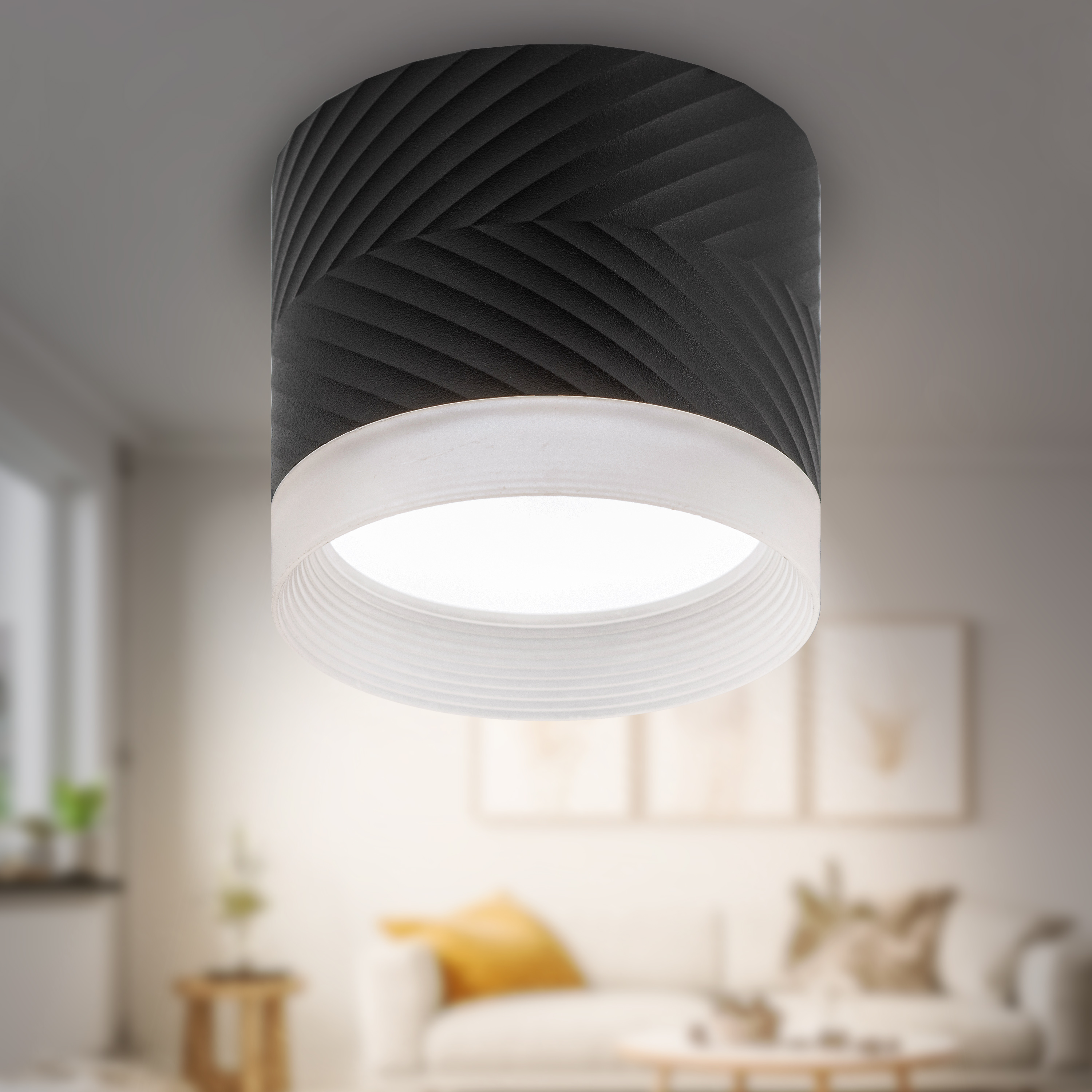 Накладной светильник OL38 BK является практичным и одновременно стильным. Корпус выполнен из алюминия, рисунок нанесен станком ЧПУ и покрыт устойчивой порошковой краской. Монтаж светильника очень простой. Нет необходимости делать врезное отверстие, чтобы закрепить его. Благодаря простому креплению, светильник можно установить как на стенах, так и на потолке, лестницах и дугих повернхностях помещеня. Цоколь для источника света GX53, напряжение питания ~230В 50/60Гц, материал алюминий, пластик, железо, цвет светильника черный, размер D82*H70мм, максимальная мощность лампы 15Вт, степень защиты IP20