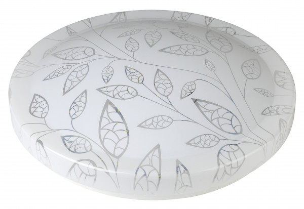 Плафон электросветильника декорирован изысканным узором. Орнаменты в виде веток с резными лепестками изящно смотрятся на круглом плоском корпусе. Такая потолочная люстра подойдет для оформления гостиной, коридора, спальни или детской.