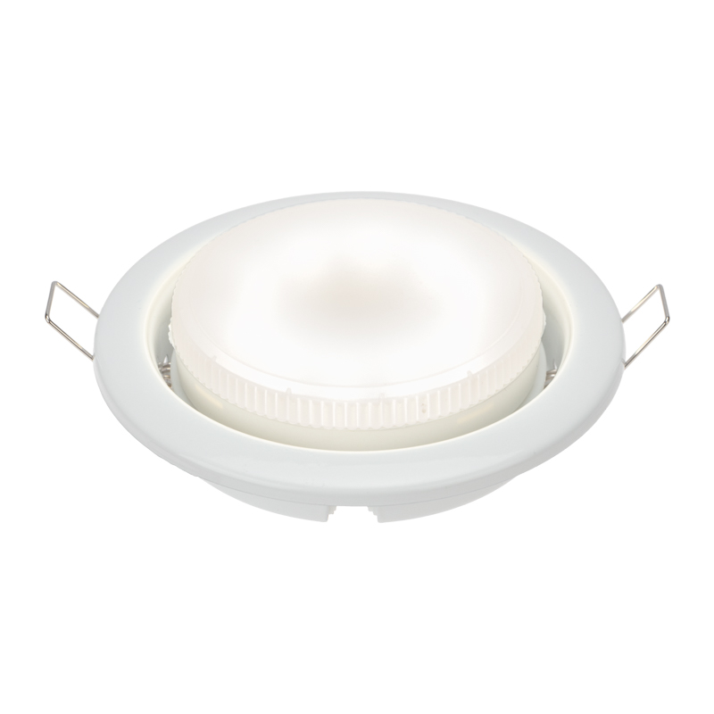 Корпус светильника выполнен из прочной стали белого цвета с глубиной монтажа 24 мм.