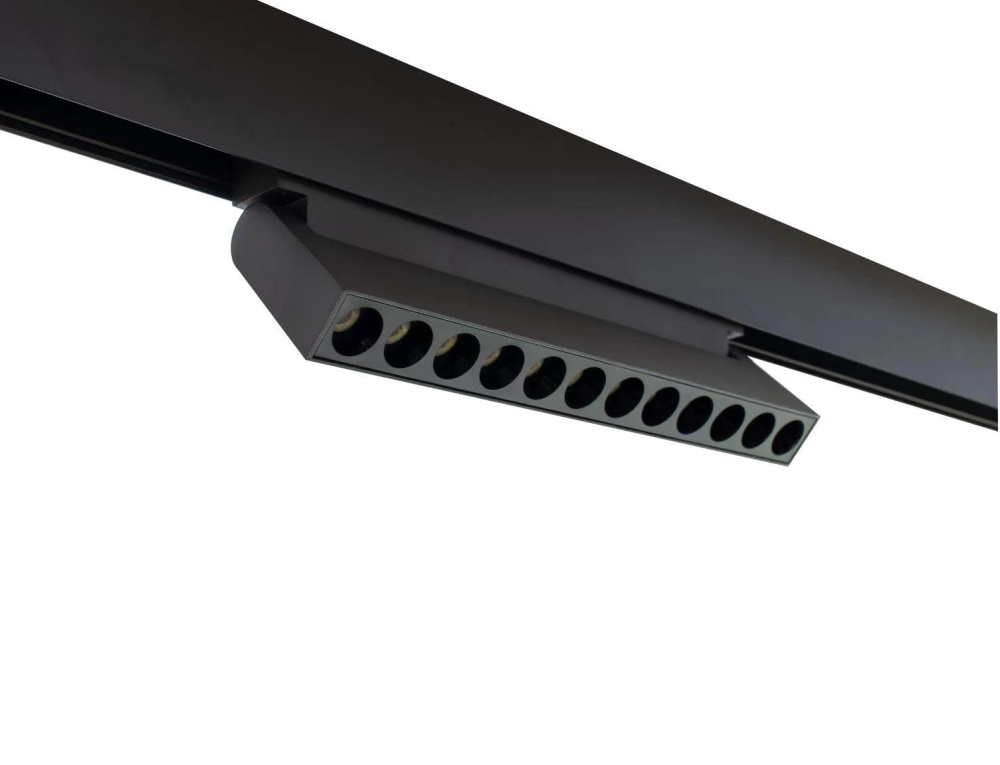 Магнитный трековый светильник TRM20-4-22-12W3K-B. Цветовая температура 3000К, индекс цветопередачи СRI>90. Мощность 12 ватт. Напряжение питания 48V. Материал корпуса алюминий. Световой прибор имеет вращающийся корпус, позволяющий регулировать направления светового потока, и угол рассеивания 30 градусов, что делает его идеальным источником света для создания акцентов в помещении и зонирования пространства.