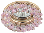 Встраиваемый светильник DK16 GD/WH/PK круглый с мелкими хрусталиками станет эффектным решением для любого помещения: его можно разместить в спальне, в детской или на кухне. Светильник можно использовать как в качестве базового освещения, так и для создания акцентов в определенных зонах комнаты. Благодаря скрытой части корпуса светильники можно встраивать в потолок или стены, создавая разный дизайн помещений. Встраиваемый светильник ЭРА с приятным дизайном подойдет для комнат с разным интерьером: от лофта до модерна, классицизма или минимализма. При помощи точечных светильников можно освещать только те участки помещения, которыми вы пользуетесь в данный момент, не затрачивая лишнюю элеткроэнергию. Максимальная мощность лампы составляет 50 Вт. Корпус встраиваемого светильника изготовлен из нержавеющей стали . Диаметр отверстия, требуемого для установки светильника составляет 65 миллиметров, а диаметр самого светильника – 90 миллиметров. Цоколь под лампу GU5.3 входит в комплект. Купив встраиваемый светильник бренда ЭРА, вы останетесь довольны и сможете создать уют в Вашем доме. Внимание: лампа не входит в комплектацию.