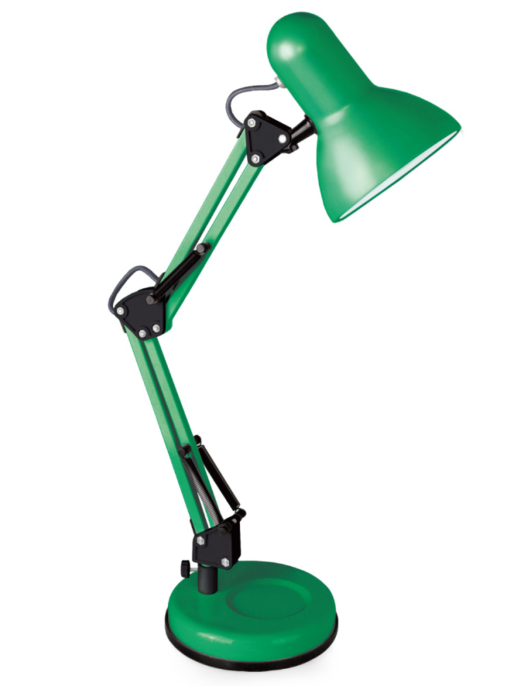 Настольный светильник Camelion KD-313 C05 зелёный 230V 60W E27 12342 подходит для установки на письменном столе или прикроватной тумбе. Изделие устанавливается на основание, питается напрямую от стандартной сети переменного напряжения 220 В.Материалом для изготовления данной модели служит металл. В качестве источника освещения может быть выбрана любая лампа с цоколем Е27 и мощностью до 60 Вт.