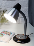 Настольный светильник ЭРА N-115-E27-40W-BK может использоваться с лампой накаливания, компактной люминесцентной лампой (КЛЛ) или светодиодной (LED) лампой. У светильника классический солидный дизайн, устойчивое металлическое основание. А также металлический плафон большого диаметра для комфортного рассеивания света. Направление света регулируется наклоном и поворотом плафона в любом направлении.