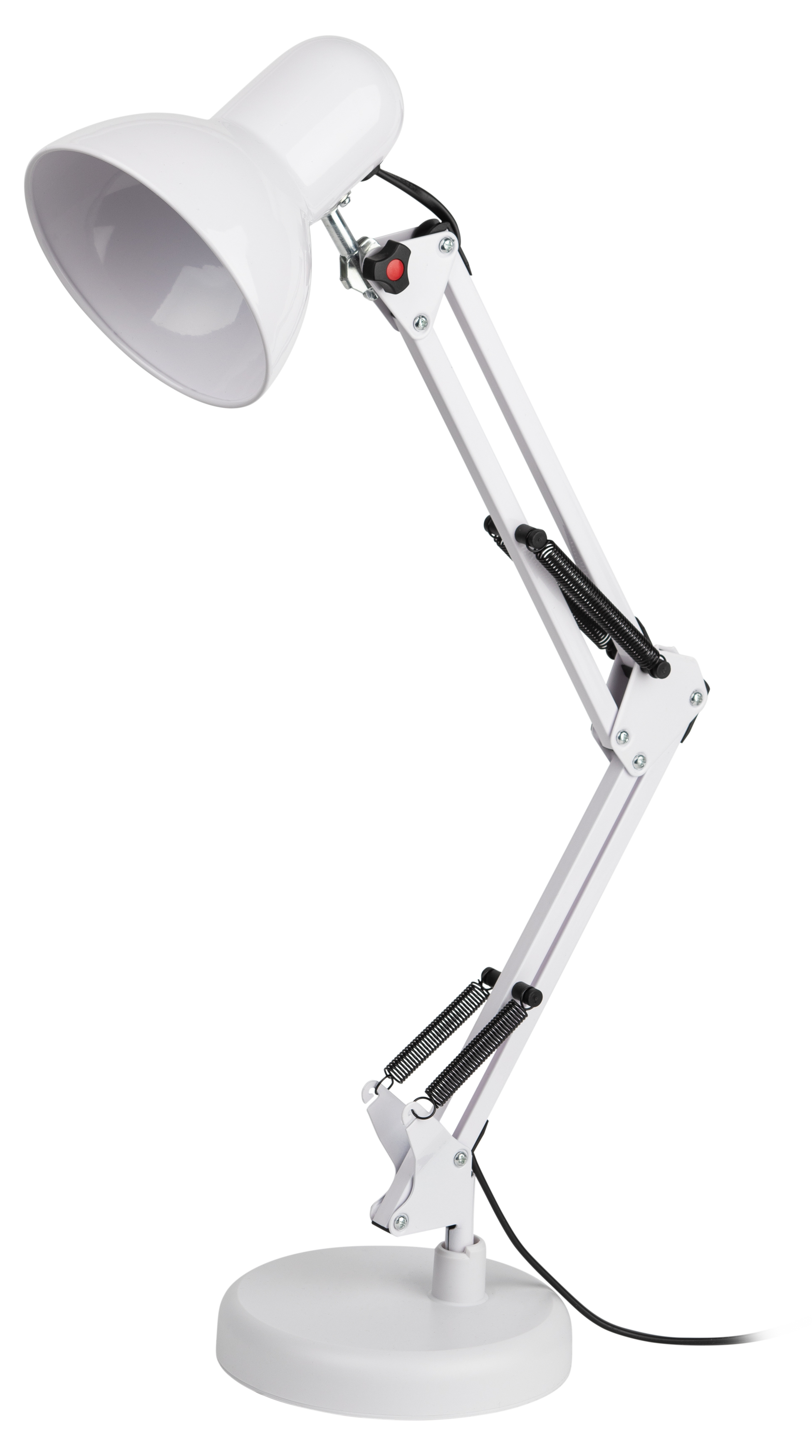 Настольный светильник ЭРА N-214-E27-40W-W классического дизайна может использоваться с разными источниками света - лампой накаливания, компактной люминесцентной лампой (КЛЛ) или светодиодной (LED) лампой. Выключатель на проводе. Устойчивое основание. Высота плафона регулируется двухсекционной сгибающейся стойкой, направление света - поворотом и наклоном плафона в любом направлении.