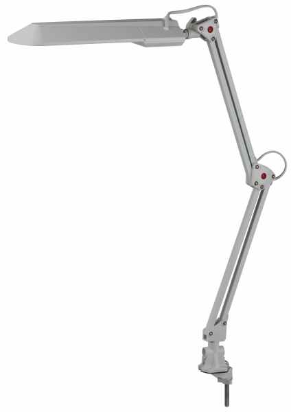 Светильник предназначен для использования с энергосберегающей лампой, которая обеспечивает экономию электроэнергии до 70%. Лампа входит к комплект. Удобное крепление на струбцину к любой плоской поверхности. Выключатель на основании плафона.Высота плафона регулируется двухсекционной сгибающейся стойкой, направление света регулируется поворотом плафона в любом направлении под любым углом.