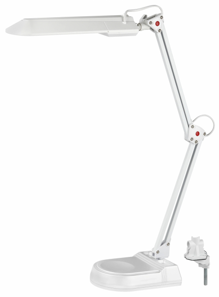 Настольный светильник ЭРА NL-202-G23-11W-W предназначен для использования с энергосберегающей лампой, лампа входит к комплект. Два варианта крепления в комплекте: устойчивое основание и струбцина. Высота плафона регулируется двухсекционной сгибающейся стойкой. Отлично экономит рабочее пространство. Варианты с комбинированным креплением дают возможность выбрать, как будет удобнее использовать светильник - с основанием его можно разместить в любом месте на поверхности стола, со струбциной компактно и надежно закрепить на край.