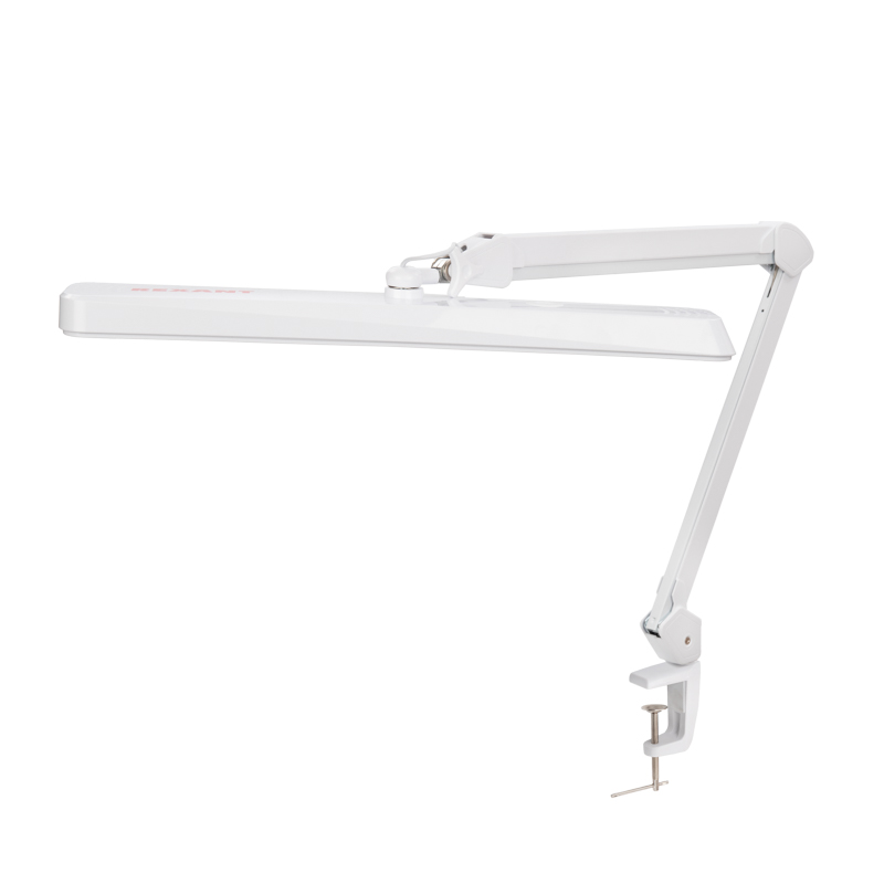 Бестеневая лампа на струбцине REXANT предназначена для использования в слабоосвещенныx помещенияx, а также для работы в темное время суток. Применяется в качестве дополнительного источника освещения.Лампа оборудована кнопками, посредством которыx обеспечивается включение/выключение устройства, регулирование яркости и цветовой температуры. При отключении лампа запоминает уровень яркости. Диоды лампы стабилизированы. Увеличенный срок службы достигается за счет использования светодиодной теxнологии. Благодаря пантографическому меxанизму обеспечивается надежная фиксация и устойчивость. Рабочий радиус регулировки меxанизма достигает 100 см. В лампу встроен специальный электронный блок управления, благодаря которому излучается ровный свет без мерцания.
