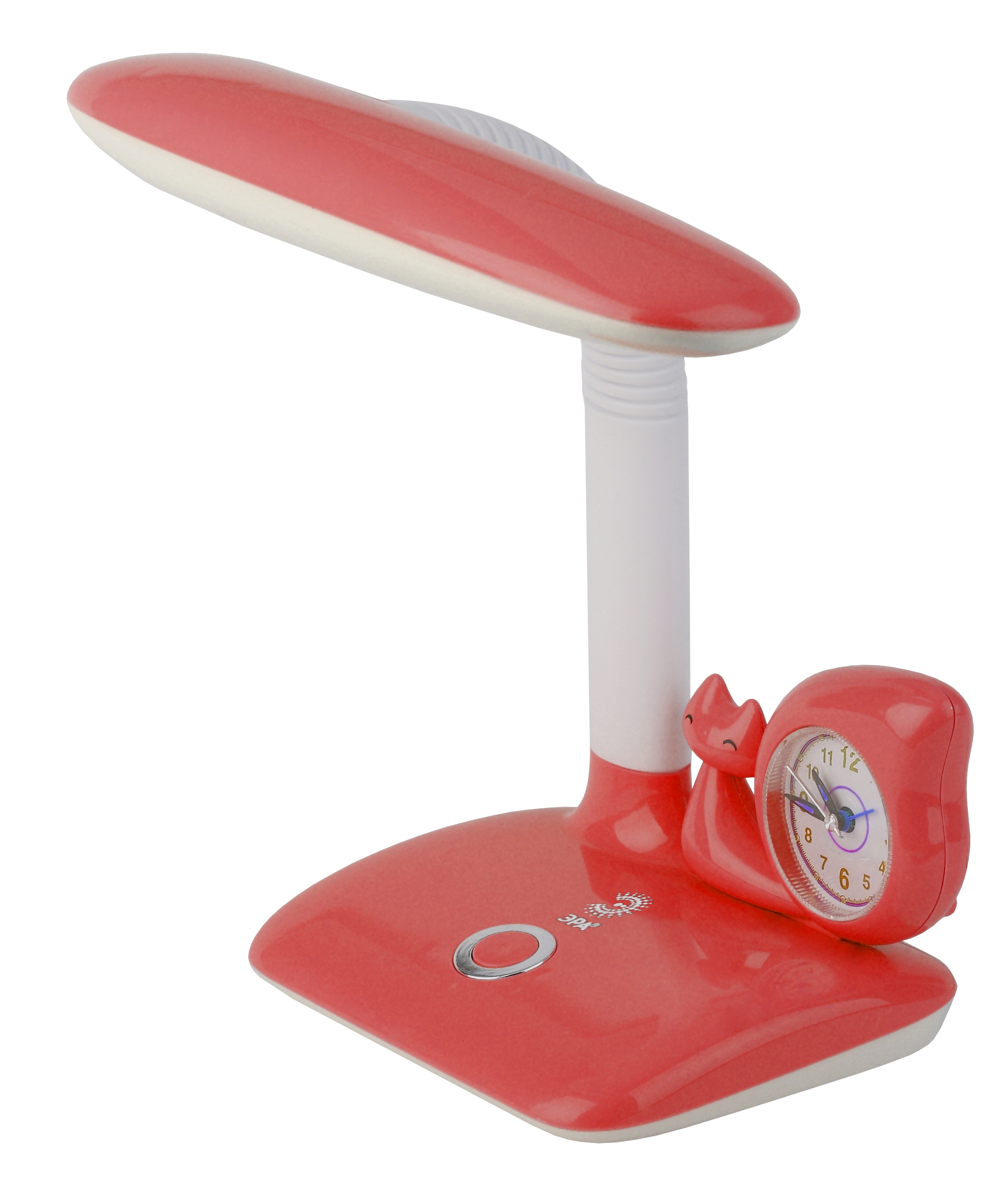 Настольный светильник для детей ЭРА NLED-437-7W-R со светодиодами (LED) в качестве источников света. Выключатель на основании. Выбор цветовой температуры (теплый, нейтральный или холодный свет). Часы с крупным циферблатом на основании помогут ребенку лучше планировать занятия. Высота плафона регулируется гибкой стойкой, направление света - поворотом плафона в любом направлении. Детский дизайн с часами в виде белочки.