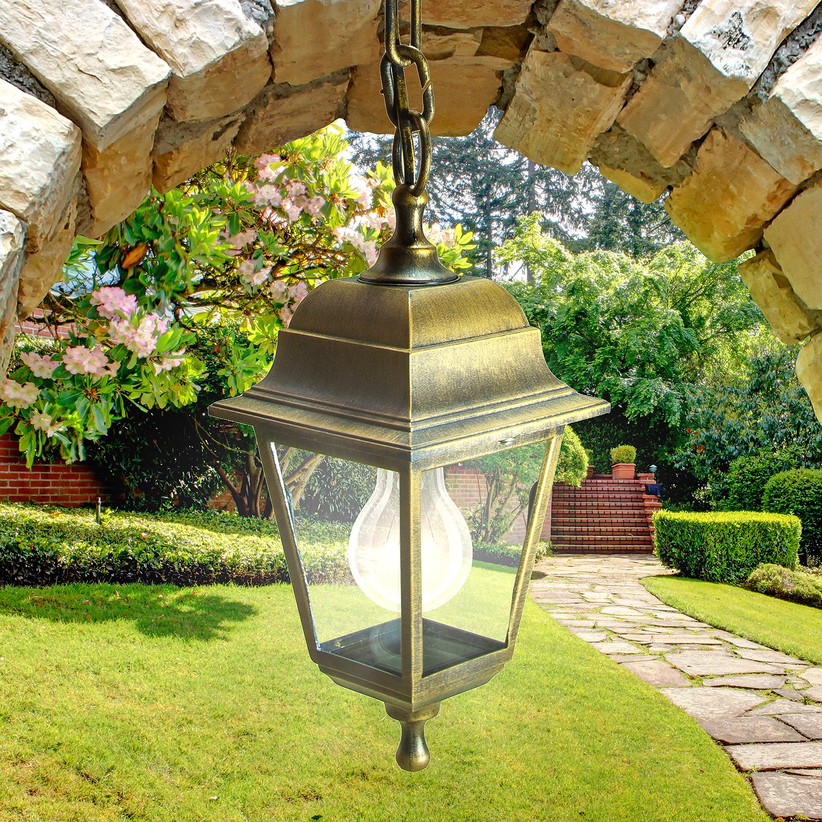 Светильник садово-парковый Адель подвесной четырехгранный под бронзу Е27 ЭРА НСУ 04-60-001 бронза