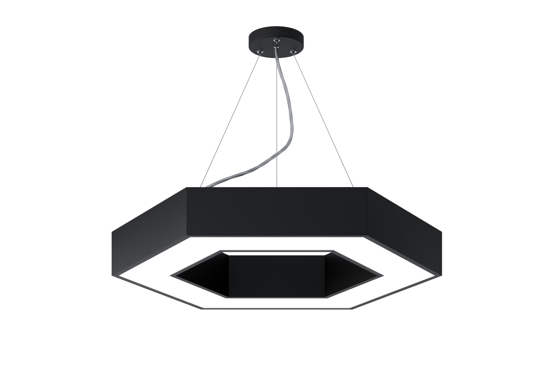 Подвесные светильники "Geometria" различных форм и размеров позволят реализовать дизайнерские идеи освещения пространства. Для каждой модели доступно 2 варианта цвета: белый и черный. Предусмотрена возможность регулировки высоты установки до 1м при помощи троса. В комплект поставки входит круглое крепление к потолку. Подвесная система максимально эстетична, питание идет по тросу. Корпус изготовлен из стали, покрытой порошковой окраской. Изолированный блок питания устанавливается на корпус светильника и входит в комплект.
