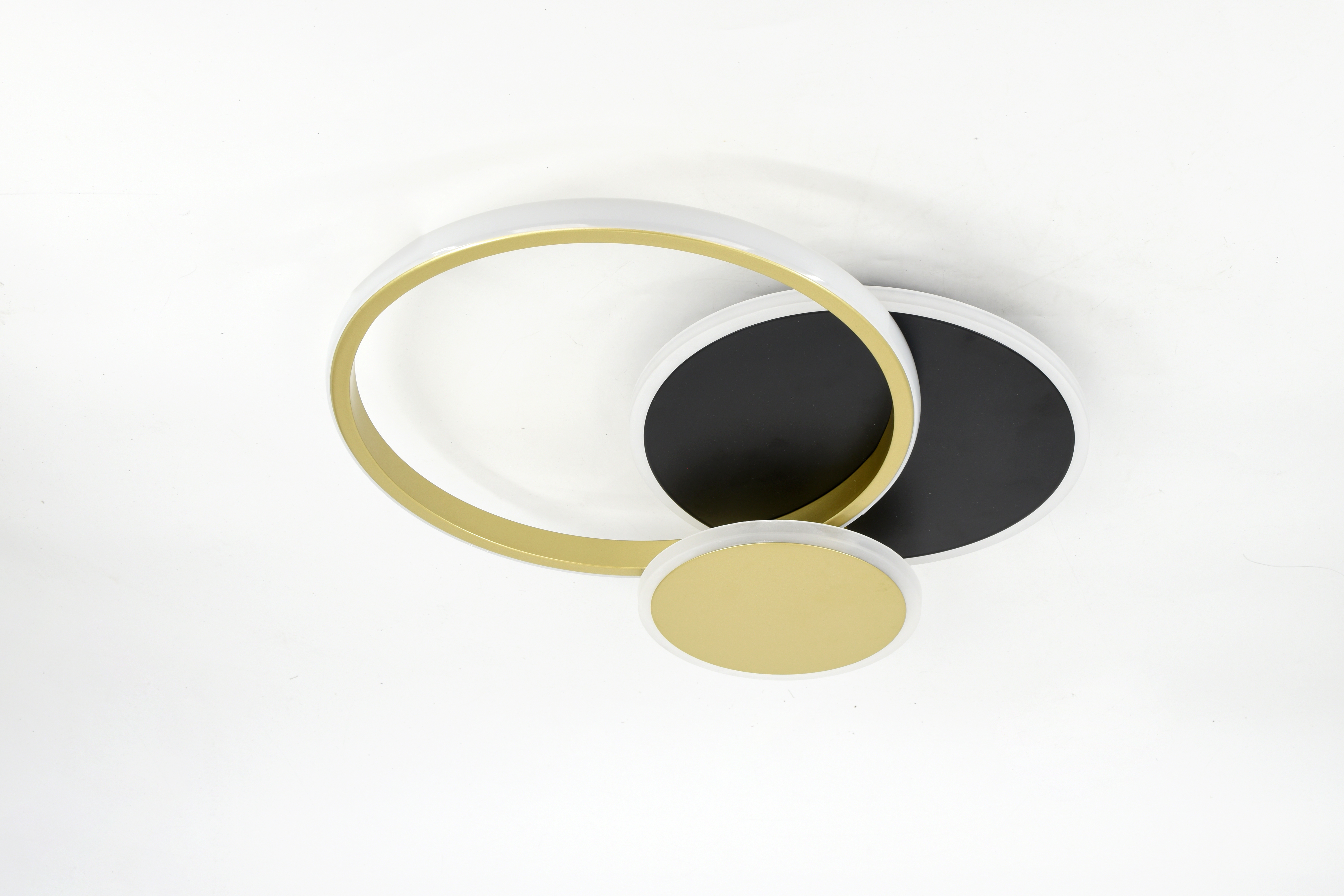 Стильный потолочный светодиодный светильник круглой формы в черно-золотом цвете — изысканное сочетание дизайна и функциональности. Оснащён пультом дистанционного управления с возможностью настройки яркости и цветовой температуры в диапазоне 3000–6500К. Мощность 60 Вт обеспечивает комфортное и равномерное освещение.