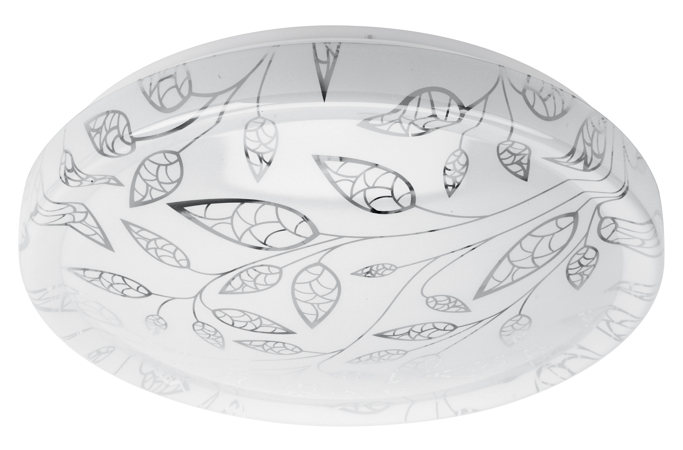 Плафон LED люстры декорирован изящным узором. Нежные ветки с лепестками гармонично смотрятся на круглом плоском корпусе. Такой светильник прекрасно подойдет для оформления гостиной, коридора, спальни или детской.