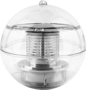 Светильник с солнечной батареей, меняющийся цвет, шар, Camelion 2212-W1 6982 имеет пластиковый сборно-разборный корпус.