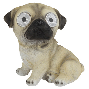 "Керамический" светильник из серии "фигур" - Собачка мопс. В дневное время суток служит прекрасным украшением, оживляет пейзаж. Ночью - декоративной подсветкой кустарника, газона, альпийской горки. Использование рефлектора в конструкции обеспечивает высо