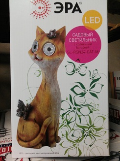 "Керамический" светильник из серии "фигур" - Кошечка. В дневное время суток служит прекрасным украшением, оживляет пейзаж. Ночью - декоративной подсветкой кустарника, газона, альпийской горки. Использование рефлектора в конструкции обеспечивает высокую яр
