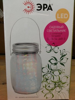 Садовая фигурка на солнечной батарее SL-GL14-JAR-3 станет волшебным украшением Вашего дачного участка. Стильная баночка будет прекрасно смотреться среди цветов, необычно подсветит кустарники или альпийскую горку. Модель имеет высоту в 13,5 см и с легкостью вставляется в землю. Беспроводной led светильник функционирует на солнечной батарее. Такой способ получения энергии является самым экологичным, энергоемким, а также бесшумным. Питание происходит во включенном режиме, днем. После захода солнца в маленькой баночке начинает твориться настоящая сказка. Внутри разными цветами переливаются "звезды". Свет светодиодов преломляется декоративной сеткой, создавая впечатление меняющих цвет ярких небесных тел. Для удобства переноски или игр в саду предусмотрена ручка. Солнечная батарея рассчитана 8 часов непрерывной работы. Высокая степень защиты от пыли и влаги позволяет оставлять садовый светильник на улице даже во время дождя. Обращаем Ваше внимание, что перед использованием фигурки её необходимо включить и зарядить. Светильник заряжается в течение всего светового дня. Подсветка на солнечной батарее SL-GL14-JAR-3 от компании ЭРА эффектный вариант для украшения Вашего сада.