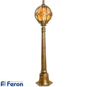 Светильник садово-парковый 60W 230V E27 IP44 черное золото,шар столб средний «Версаль» FERON PL3806