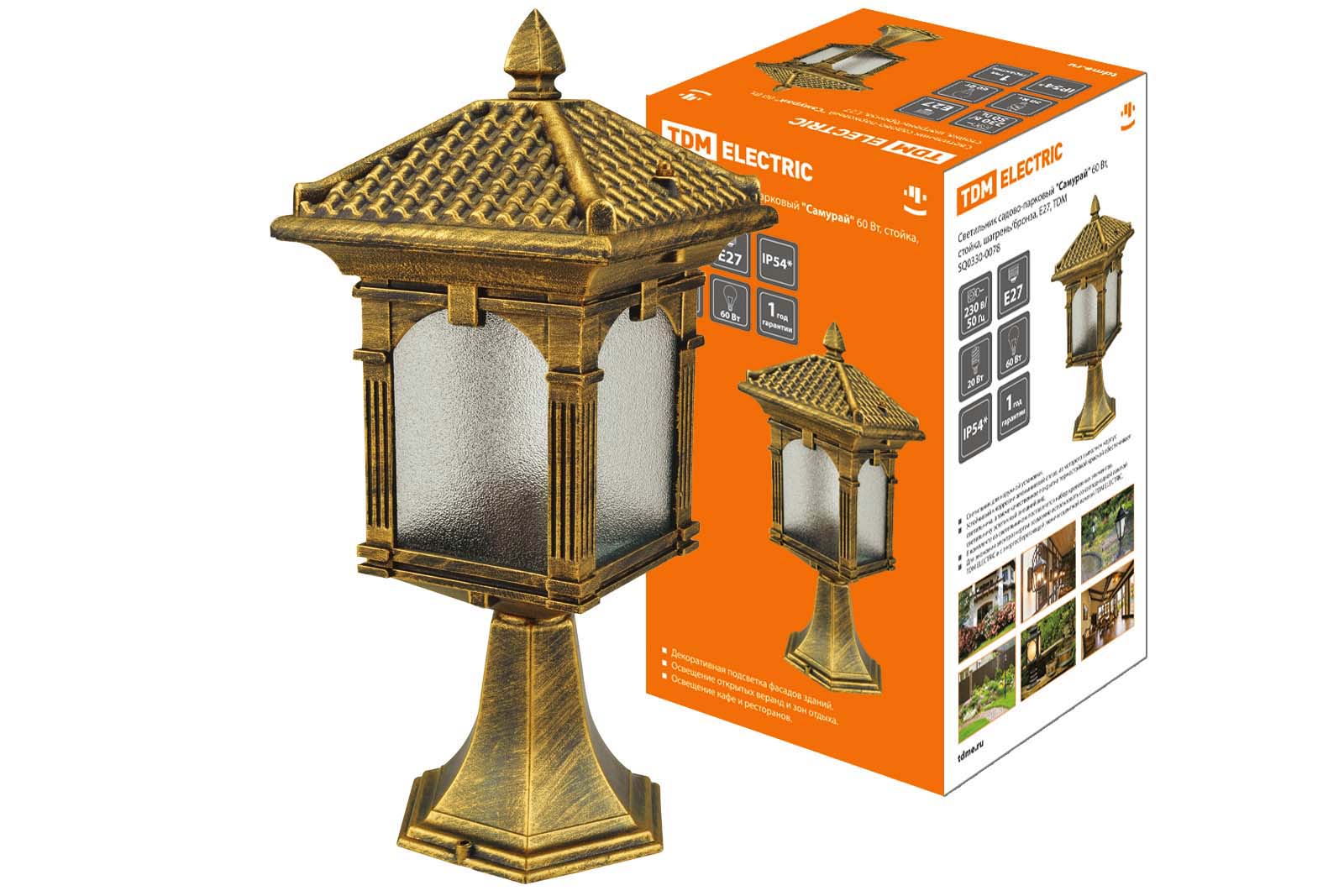 Светильник садово-парковый 60Вт 230В E27 IP44 стойка, шагрень/бронза TDM "Самурай" 1/12
