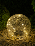 Декоративный уличный светильник в виде светящегося прозрачного шара с эффектом кракле. ERASF08-25 создаст на Вашем участке атмосферу сказки и поселит волшебство. Небольшие размеры позволят Вам установить светильник в укромном месте сада, украсить декоративный прудик или бассейн, необычно подсветить цветы, аллею или альпийскую горку. Фигурка из пластика диаметром 20 см с легкостью устанавливается в землю. Стеклянный шар с эффектом кракле. Отлично смотрится в саду днем как декоративный элемент и восхищает ночью своим светом. Максимальный эффект достигается в сочетании с шаром малым (15 см).Светодиодный светильник функционирует на солнечной батарее. Данный вид получения энергии является самым экологичным, энергоемким, а также бесшумным. Питание происходит во включенном режиме "ON", днем. С наступлением темноты шар загорается теплым белым светом. Создается ощущение, что он обладает магическими свойствами, а внутри мелькает множество светлячков. Солнечная батарея рассчитана на 8 часов непрерывной работы. Высокая степень пыле и влагозащиты, а также ударопрочность корпуса позволяют оставлять светильник в саду во время дождя. Обращаем Ваше внимание, что перед использованием фигурки её необходимо включить и зарядить. Светильник заряжается в течение всего светового дня. Садово-парковый светильник шар от бренда ЭРА волшебство ближе, чем Вы думаете.