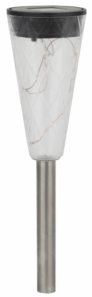 Светильник-втыкашка с линейкой "светлячков" внутри в ПРОМОБОКСЕ. Высота 35 см, диаметр 6,5 см. Основание из нержавеющей стали. Белое свечение светодиодов.