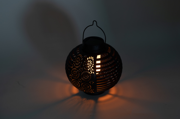 Подвесной круглый фонарь садовый ЭРА ERASF22-49 (арт. Б0057661) с узорчатой перфорацией для красивого светового рисунка и динамичным тёплым светом, имтирующим свет живого огня. Лёгкий и прочный уличный фонарь с ручкой для подвеса и удобного переноса поставляется в комплекте с эффектным изогнутым держателем. Стойка легко устанавливается в грунт за счёт заострённого колышка. Внутри круглого перфорированного плафона - яркий светодиод тёплой цветовой температуры. Встроенная солнечная батарея позволяет размещать светильник-фонарь в любом месте загородной территории. Солнечная энергия - экономичный и экологичный источник энергии. После подзарядки от дневного света, данный подвесной уличный светильник самостоятельно включится, как только наступят сумерки.