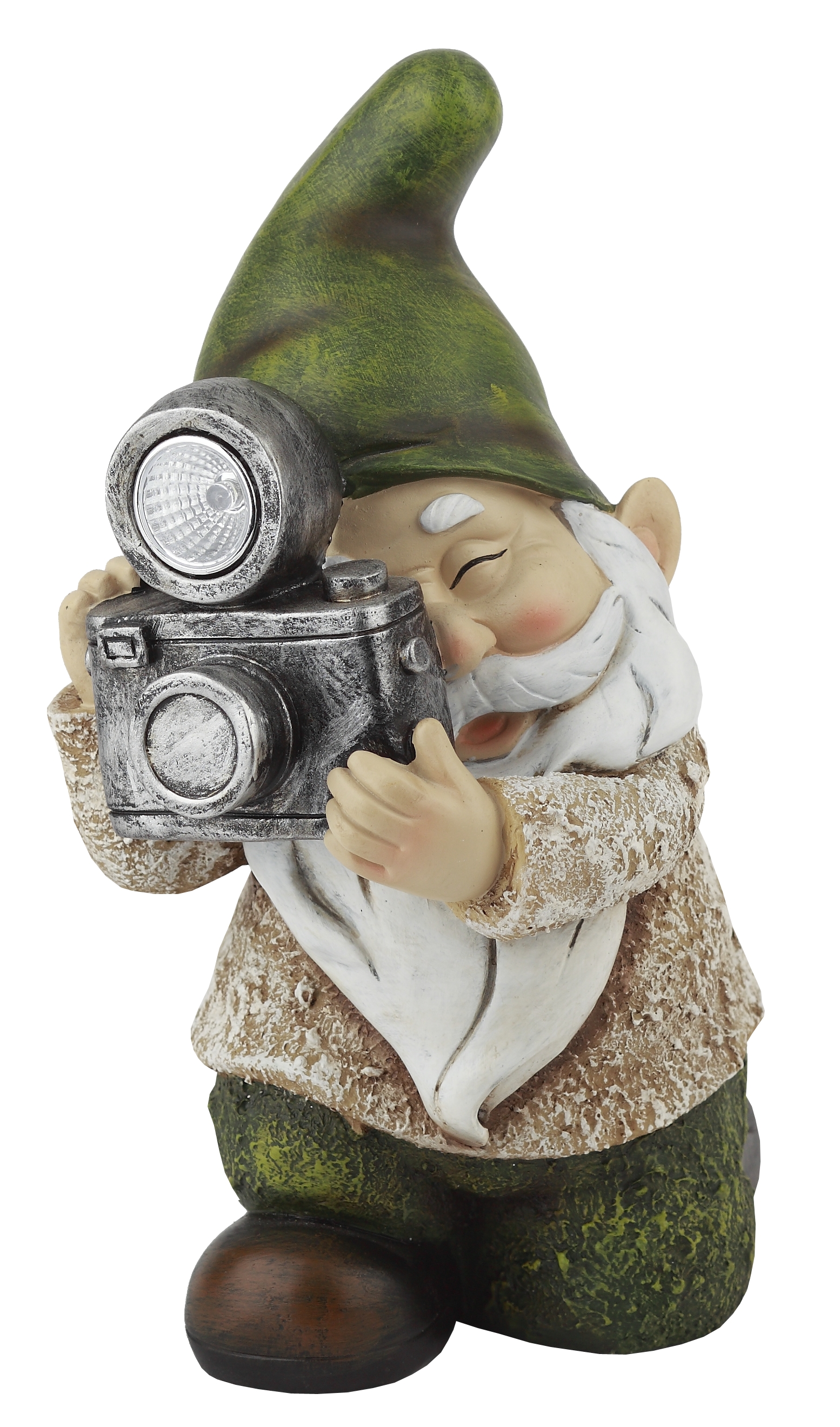 "Керамический" светильник из серии "фигур" - Гном с фотоаппаратом. В дневное время суток служит прекрасным украшением, оживляет пейзаж. Ночью - декоративной подсветкой кустарника, газона, альпийской горки. Использование рефлектора в конструкции обеспечива