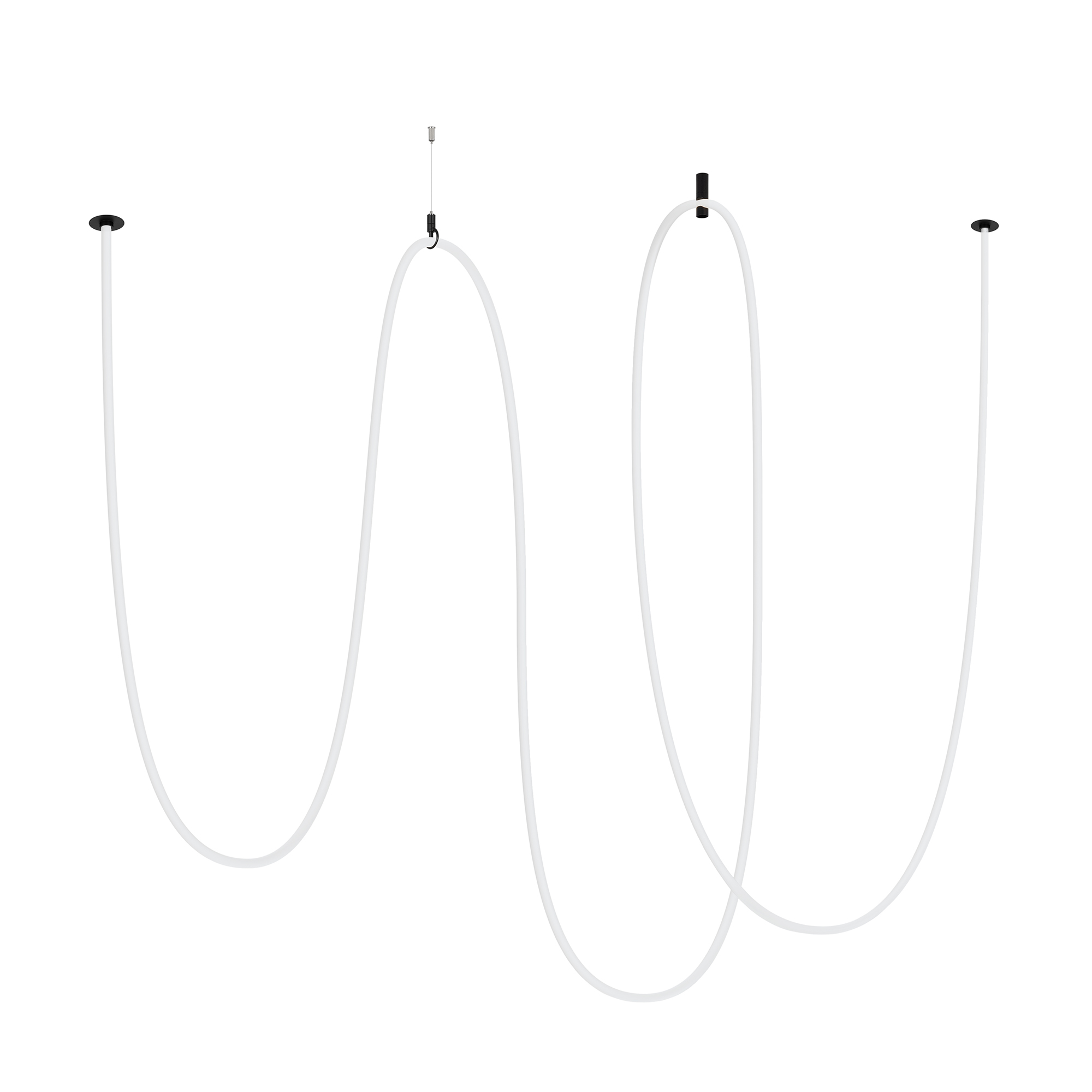 Подвесной светильник. Мощность 110 Вт, св. поток 7455 лм, 67 лм/Вт, дневной 4000 K, CRI>90, угол 360°, напряжение питания 230 В. Черный круглый корпус из стали, силиконовая герметичная лента, степень защиты IP20. Размер: диаметр утапливаемой части чаши 64 мм, высота чаши с утапливаемой частью без вывода под неон 40 мм, общая высота чаши 57 мм, диаметр чаши с фланцем 100 мм, диаметр силиконовой герметичной ленты 18 мм, длина силиконовой герметичной ленты 10000 мм. Монтаж встраиваемый, глубина установки 55 мм, диаметр установочного отверстия 70 мм. Блок питания 24 В, 2500 мА, пульсация <5% (2 шт.) в комплекте