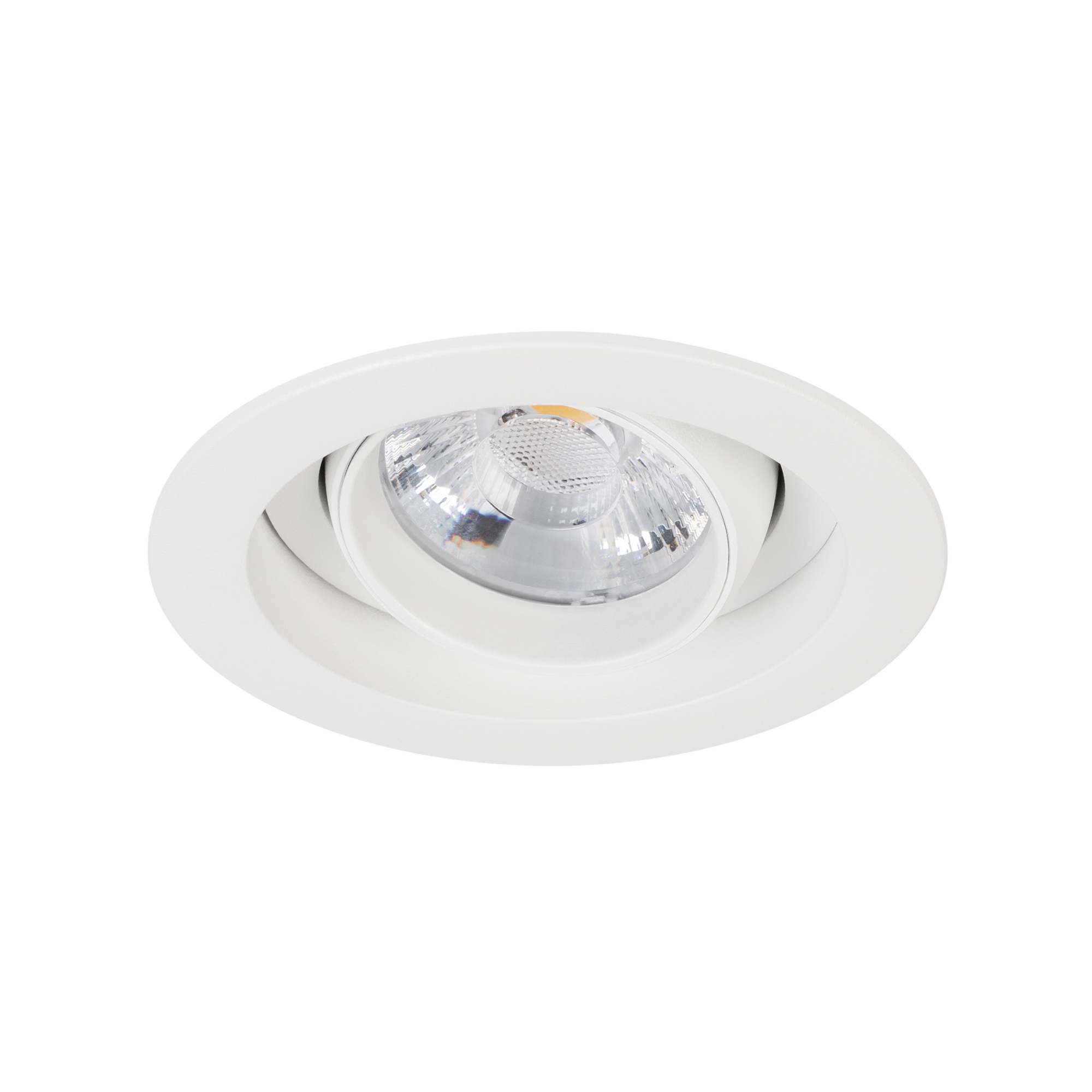 Встраиваемый карданный светильник. Мощность 12 Вт, св. поток 1318 лм, 109лм/Вт, тёплый 3000 K, CRI>92, угол 20°, напряжение питания 230 В. Белый корпус из алюминия, белая вставка, степень защиты IP20. Размер: диаметр 90мм, высота 80 мм. Монтаж встраиваемый, установочное отверстие: диаметр 75мм. Драйвер 27-40 В, 300 мА, пульсация <2%.