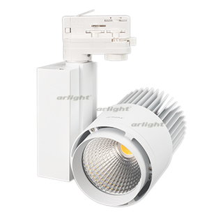 Подвесной светильник для треков/шин 4 провода. Светодиод CREE 40W, цвет ТЁПЛЫЙ 3000K, св.поток 3200-3600 лм, угол 38°. Белый корпус. Мощность 40Вт, питание AC180-240V. Максимальные габариты HxLxW: 205х165х160 мм