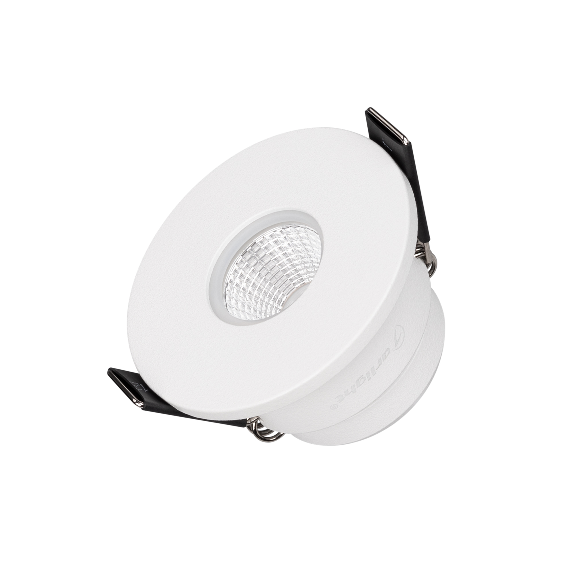 Встраиваемый светильник даунлайт. Мощность 5 Вт, св. поток 400 лм, 80 лм/Вт, теплый 3000 K, CRI>90, угол 38°, напряжение питания 230 В. Белый круглый корпус из алюминия, экран PMMA, степень защиты IP54. Размер: диаметр 54 мм, высота 30 мм. Монтаж встраиваемый, установочное отверстие: диаметр 45 мм. Драйвер IP54, 8-12 В, 400 мА, пульсация <2%.