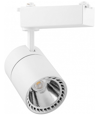 Светильник трековый на шинопровод, однофазный (ДПО) FERON AL103, 20W, 4000К (белый), 170-265V, 1800Lm, цвет белый, корпус алюминий, рассеиватель поликарбонат, вращение →360°/↓90°, 78*130*168 мм