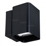 Уличный светодиодный светильник для стен, изменяемый угол освещения 0°-80°, свет вверх-вниз на 2 стороны. Цвет ТЕПЛЫЙ БЕЛЫЙ 3000К, светодиоды 2x6Вт CREE (750 лм). Влагозащищенный корпус IP54 - черный (RAL9011) алюминий, экран ударопрочный PC. Питание 230В, мощность 12 Вт. Размеры ВхШхГ -138х104х129 мм.