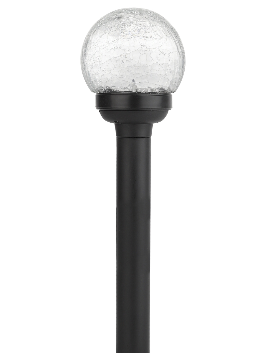 Светильник-втыкашка Кракле. Диаметр стеклянного шарика 5,5 см. Основание - пластик. RGB светодиод. Поставляется в промоупаковке по 12 шт. Обращаем Ваше внимание, что перед использованием фигурки её необходимо включить и зарядить. Светильник заряжается в течение всего светового дня.