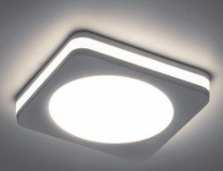Светильник встраиваемый светодиодный, с белой LED подсветкой (ДВО) FERON AL601, 7W 4000К (белый), 230V, 560Lm, IP20, угол рассеивания 120°, цвет белый, корпус алюминий, рассеиватель матовый акриловый полимер, 82*82*30 мм, монтажн.отв. 55 мм.