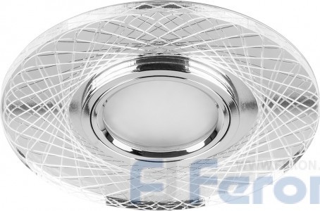 Светильник потолочный встраиваемый (ИВО) FERON CD970, под лампу с LED подсветкой 15LED2835 SMD 4000K, MR16 G5.3, прозрачный хром, круг, 12012020 мм, монтажн.отв. 60 мм, корпус полимер, неповоротный
