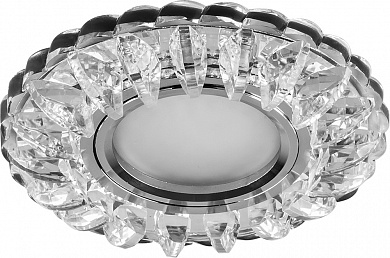 Светильник потолочный встраиваемый (ИВО) FERON CD932, под лампу с LED подсветкой 15LED*2835 SMD 4000K, MR16 G5.3, прозрачный хром, круг, 98*98*25 мм, монтажн.отв. 65 мм, корпус полимер, неповоротный