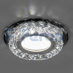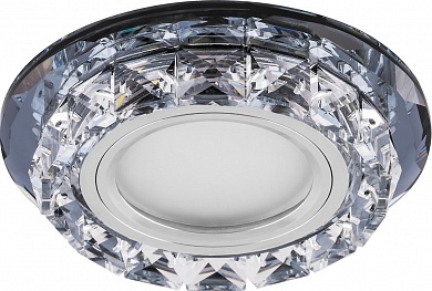 Светильник потолочный встраиваемый (ИВО) FERON CD878, под лампу с LED подсветкой 15LED*2835 SMD 4000K, MR16 G5.3, прозрачный прозрачный, круг, 100*100*30 мм, монтажный диаметр 60мм,  корпус стекло, неповоротный