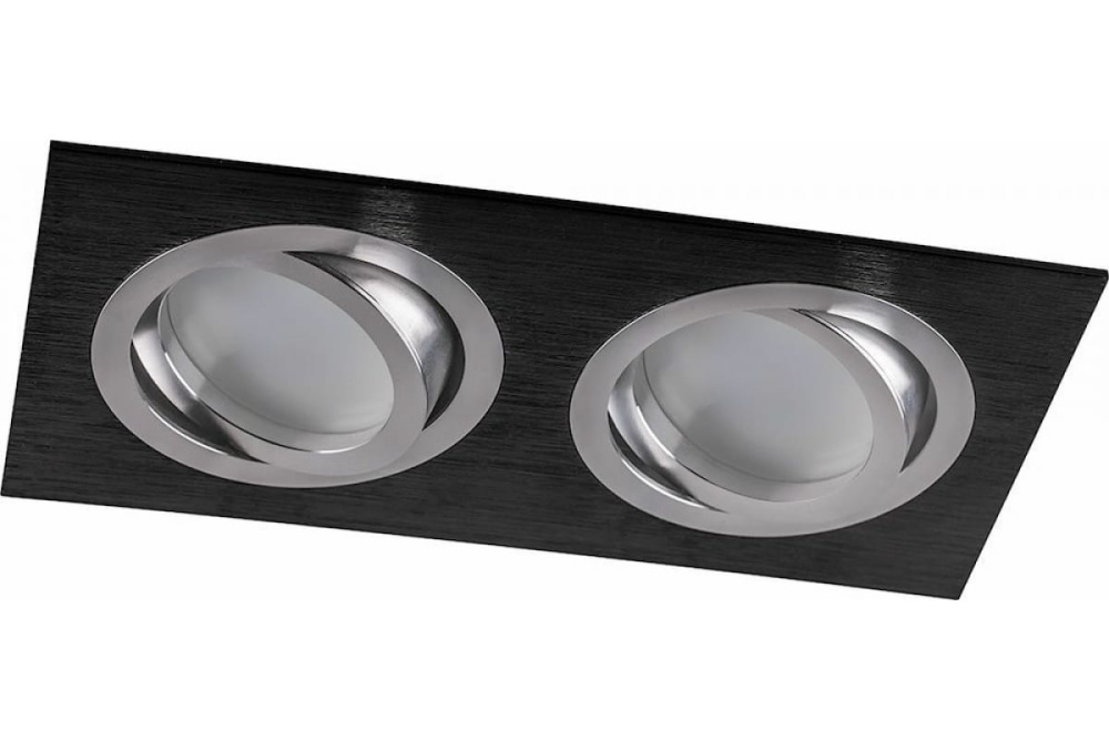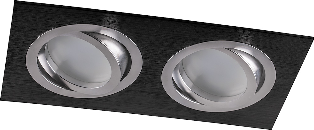 Светильник потолочный встраиваемый (ИВО) FERON DL2802, под лампу MR16 G5.3, черный-хром, прямоугольник, 92*175*25 мм, монтажный диаметр 155мм,  корпус металл, поворотный