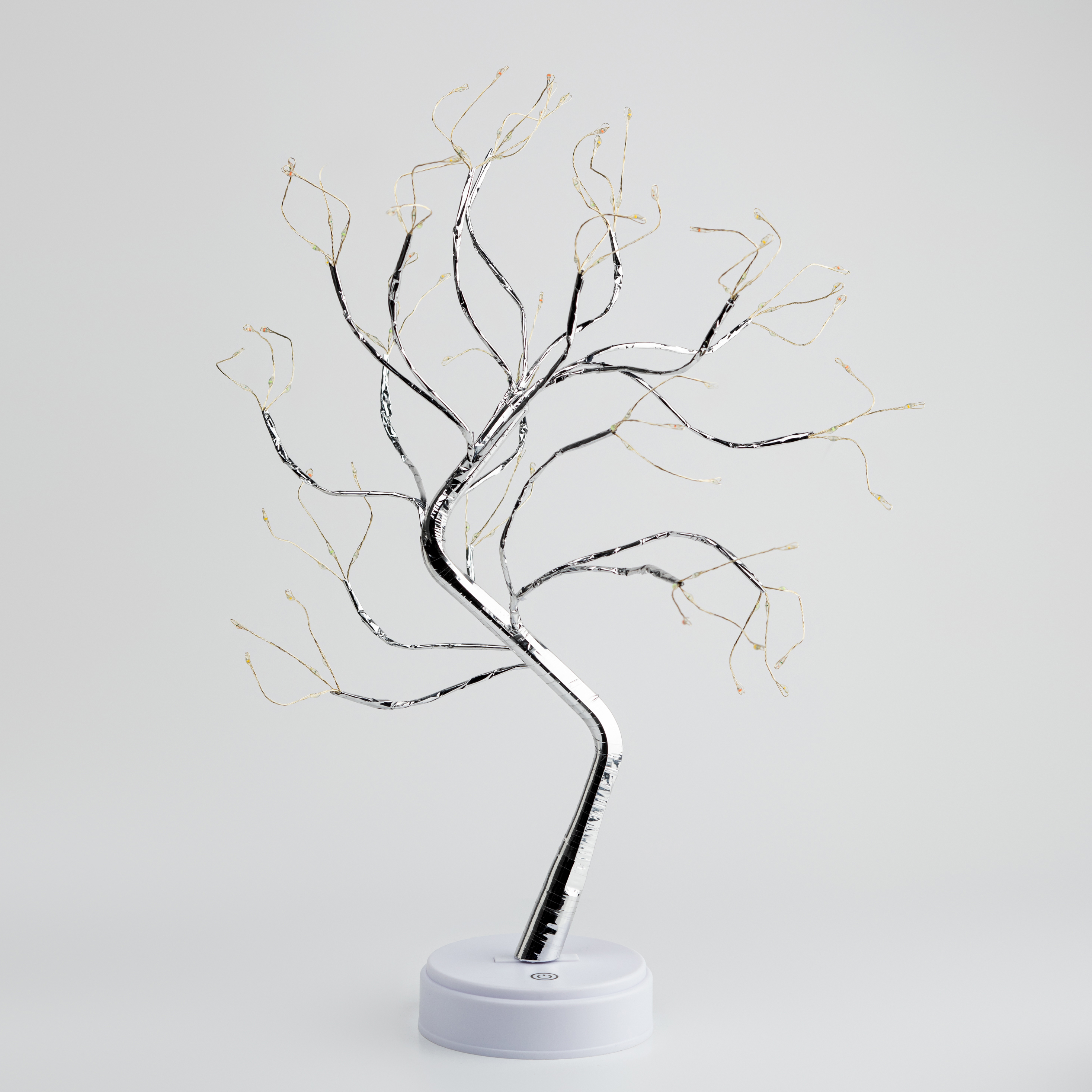 Светодиодный декоративный светильник ЭРА ЕGNID - 36MC "Дерево с самоцветами" с 36 миниатюрными светодиодами microLED. Прекрасное решение купить такой LED-светильник как новогодний светильник, новогодний ночник, новогодний подарок, праздничный декор на стол, новогодний декор на полку, новогодний декор в офис. Микросветодиоды - настоящий тренд в области декоративного освещения. Настольное светящееся дерево ЭРА высотой 45 см красиво светится разными цветами, microLED-лампочки украшают элегантные тонкие ветви с серебристым покрытием. Современный декоративный светильник ЭРА "Дерево с самоцветами" на сенсорном управлении - удобная кнопка включения располагается на лаконичной подставке. Два типа питания: 3 батарейки АА или подзарядка от USB-кабеля. Светящееся LED-дерево - прекрасный подарок к любому празднику. Это уникальная новинка на российском рынке.