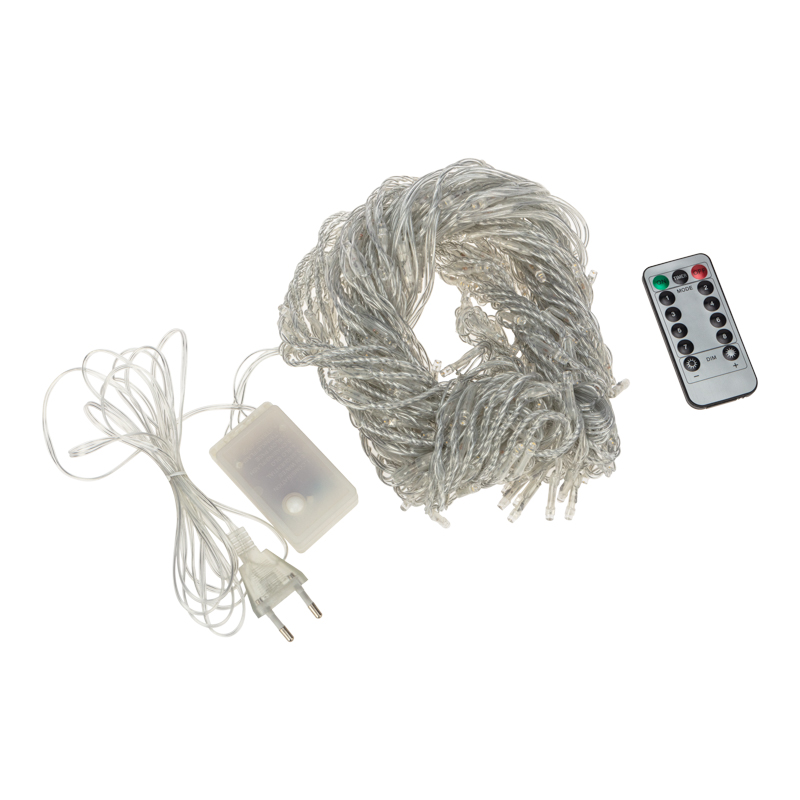 Данная гирлянда имеет белый цвет свечения светодиодов, контроллер и трансформатор в комплекте.
