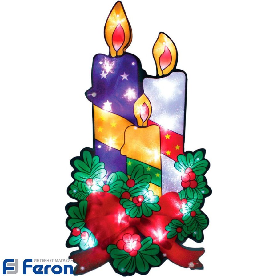 Световая фигура "3 свечи" FERON LT031, от сети 230V, сетевой шнур в комплекте, 20LED (белый), 1,5W, IP20, материал PVC, 1500м, 240*20*440мм
