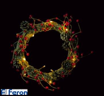 Световая фигура "венок из гирлянды" FERON LT058, на батарейках 3*АА, батарейки отсутствуют в комплекте, 15LED (белый), 0,9W, IP20, материал пластик, дерево, 300м, 270*нет*270мм